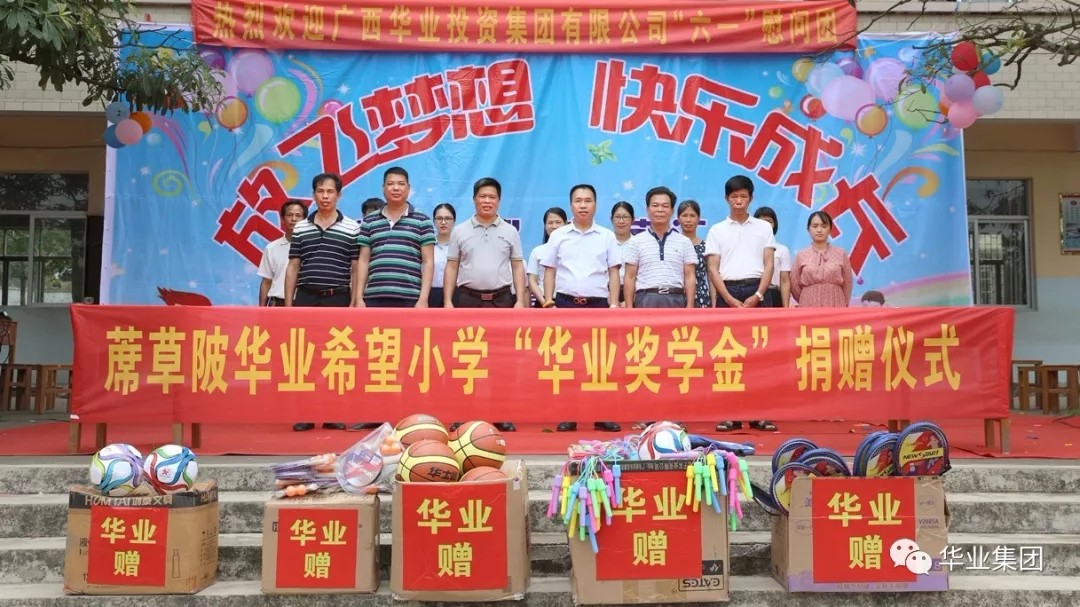 2019年5月30日,蓆草陂華業(yè)希望小學(xué)“華業(yè)獎(jiǎng)教學(xué)金”捐贈(zèng)儀式隆重舉行,華業(yè)集團(tuán)總裁龍其偉、工會(huì)主席鐘麗霞等華業(yè)集團(tuán)員工參加了捐贈(zèng)儀式,并給希望小學(xué)贈(zèng)送了學(xué)習(xí)用品、體育用品等物資。高橋鎮(zhèn)鎮(zhèn)長(zhǎng)舒金、華業(yè)希望小學(xué)校長(zhǎng)林家海等當(dāng)?shù)仡I(lǐng)導(dǎo)對(duì)華業(yè)集團(tuán)表示了熱烈的歡迎。