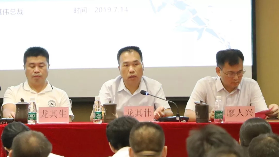 2019年7月14日,華業(yè)集團2019年年中工作會議在防城港市華業(yè)城順利召開,華業(yè)集團董事長龍其生、總裁龍其偉、副總裁廖人興、龐樹玉、熊昭斐、劉藝等公司高層領(lǐng)導(dǎo)及管理人員代表共150多人參加了會議。會議由熊昭斐副總裁主持。