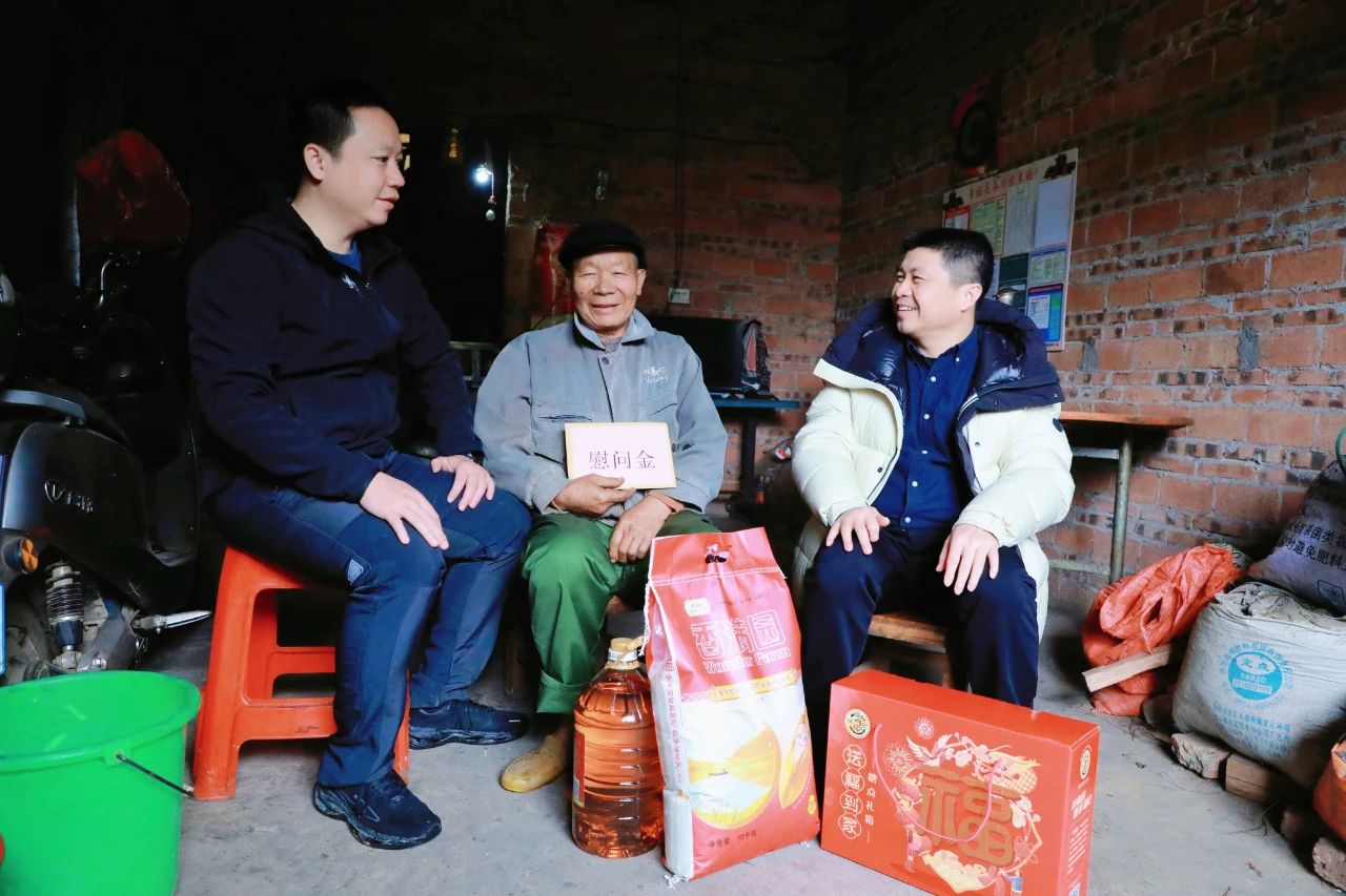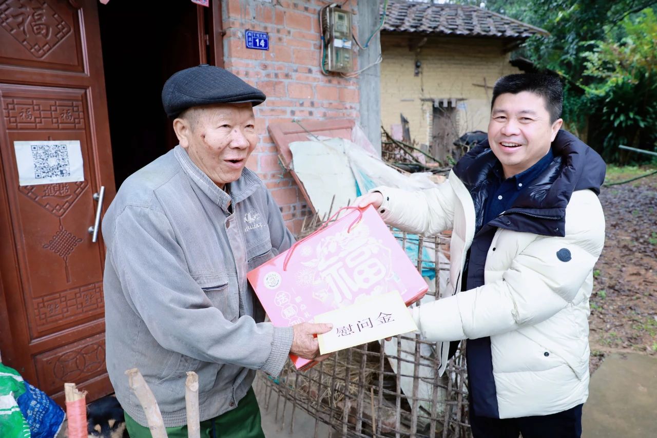 熊昭斐副總裁為峒中鎮(zhèn)尚義村、灘營鄉(xiāng)那林村的困難群眾發(fā)放慰問金和禮品,并向駐村工作隊(duì)、村“兩委”成員和困難群眾致以新春問候和美好祝福。