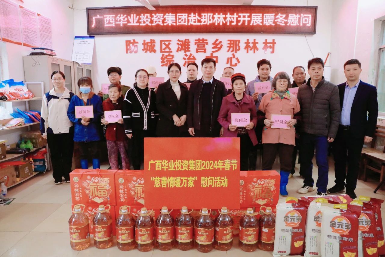 1月30日,為深入落實(shí)習(xí)近平總書記關(guān)于“對困難群眾要格外關(guān)注、格外關(guān)愛、格外關(guān)心”的重要指示,廣西華業(yè)集團(tuán)積極響應(yīng)廣西工商聯(lián)、廣西慈善總會號召,組織開展2024年春節(jié)“慈善情暖萬家”慰問活動。廣西總商會副會長、廣西慈善總會副會長、廣西華業(yè)集團(tuán)董事長龍其生、副總裁熊昭斐分別帶隊(duì)前往防城港市防城區(qū)那梭鎮(zhèn)灘浪村、峒中鎮(zhèn)尚義村、灘營鄉(xiāng)那林村進(jìn)行慰問。
