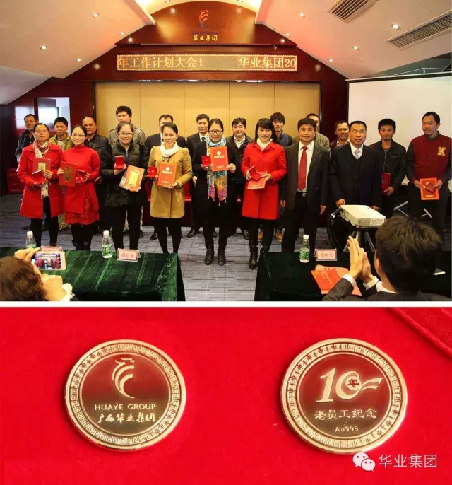 公司領(lǐng)導(dǎo)為十年員工頒發(fā)榮譽證書及紀(jì)念金幣